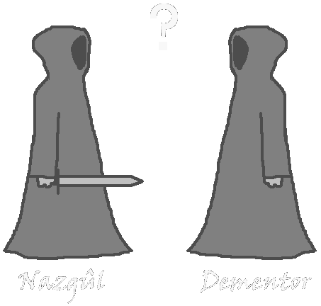 Her har vi to ikke helt menneskelige slags væsner. De ser ikke ens ud (Nazgûl er usynlige), men til gengæld er de altid indhyllet i sorte/grå kapper så man ikke kan se dem. Hvor de kommer spreder de frygt omkring sig og de er ikke særlig velholdte blandt hverken gode eller onde.